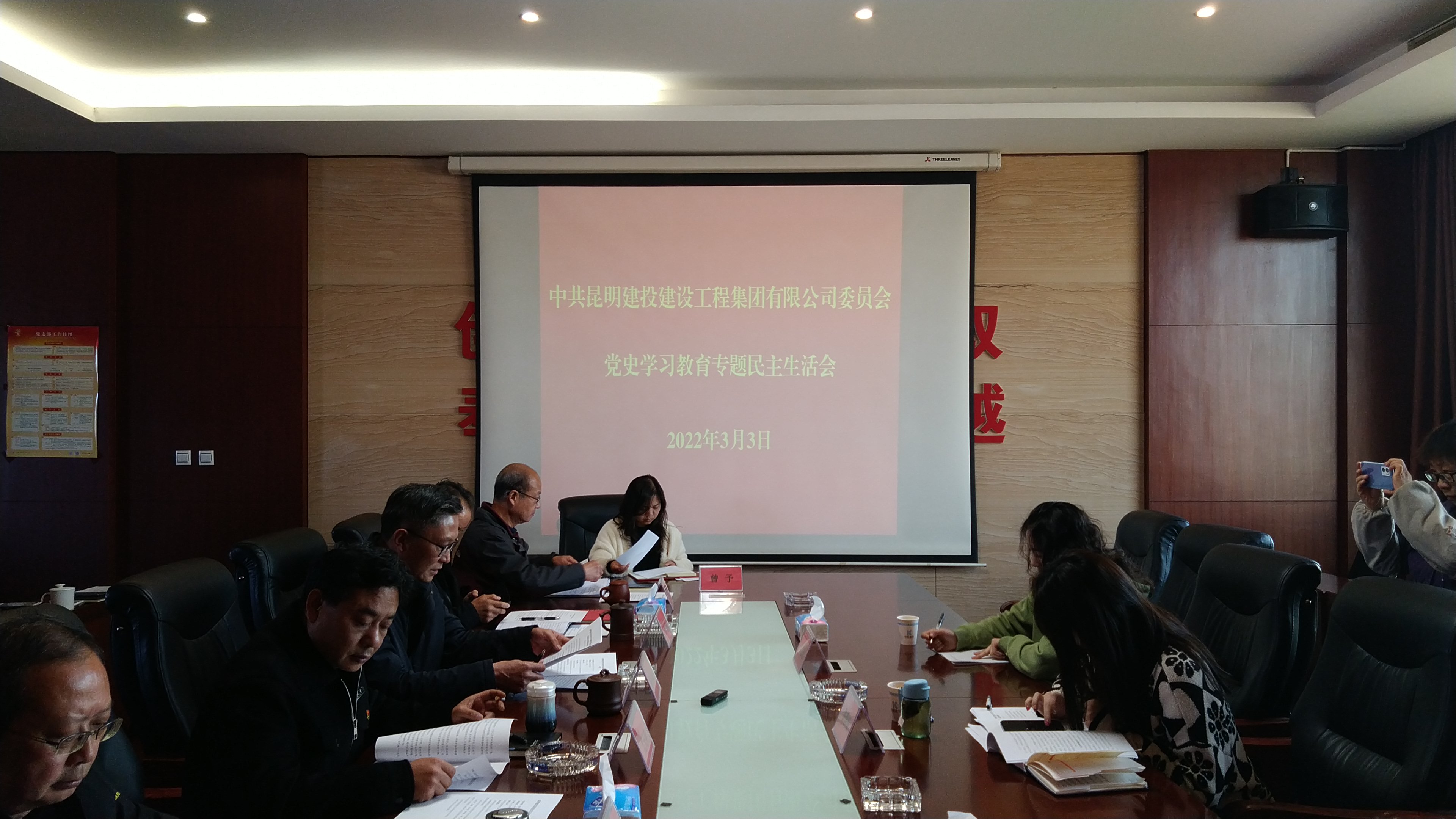 根據(jù)《中共昆明建投建設工程集團有限公司委員會黨史學習教育專題民主生活會方案》,2022年3月3日上午9:30,公司黨委在公司416會議室召開黨史學習教育專題民主生活會。會議由公司黨委書記邢馬華主持,公司黨政領導班子成員參加會議,黨群工作部、紀檢監(jiān)察室人員列席會議,昆明交投黨委第三督導組張歆鈺同志等到會指導。